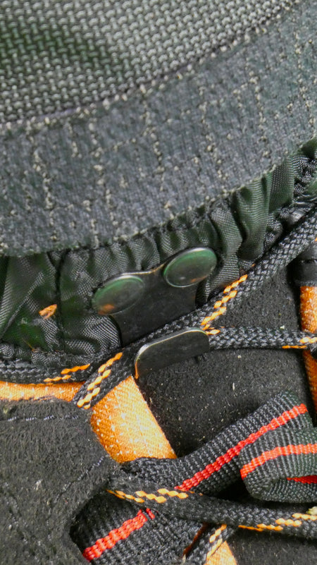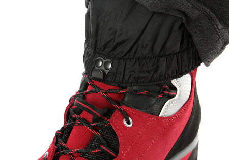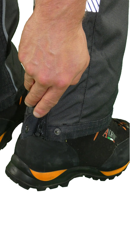 Avtakbare gamasjer med krokfeste til skolissene – holder buksene på plass under klatring