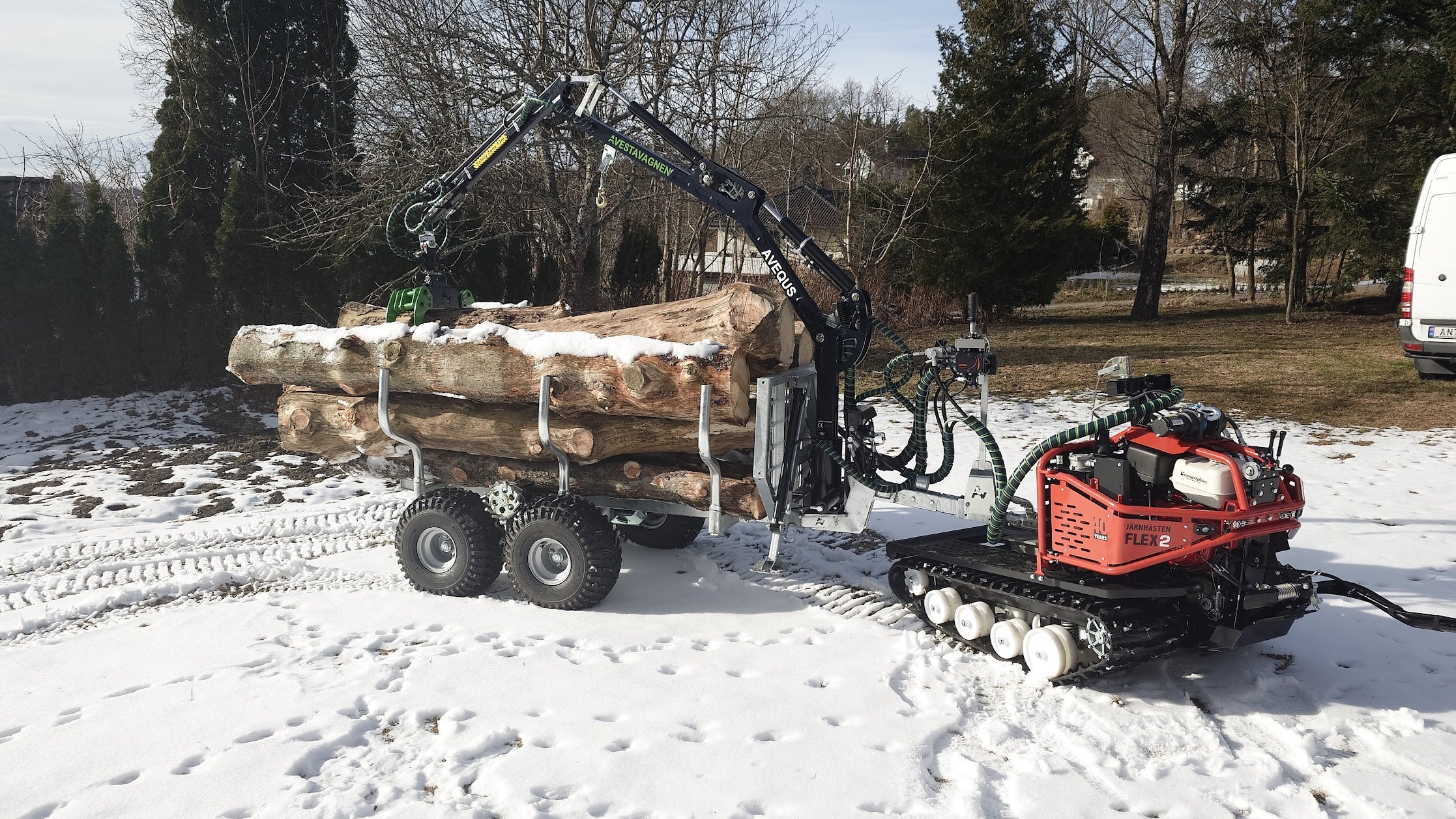 Skogshenger med drift på hengeren, lys og radiostyrt hydraulisk vinsj. Hengeren er tilpasset Jernhest Flex2 og det eneste som trengs på Jernhesten er en manøverkit for å betjene hengeren . Det bestilles separat og er enkelt å montere.