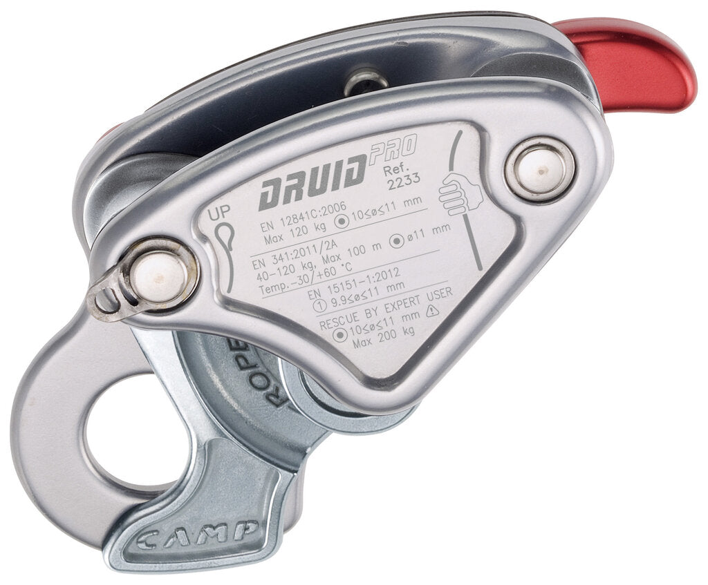 Druid Pro er godkjent som nedfiringsbrems - NS EN 12841 C - for arbeidere opptil 120kg, og er godkjent for redning på tau for laster opp til 200kg. Måten kammen er utformet på gir deg et annet momentet enn andre bremser og gir deg utrolig god kontroll under nedfiring, selv på høye laster.