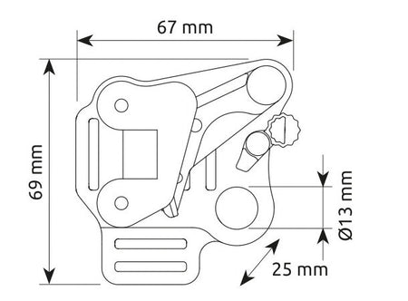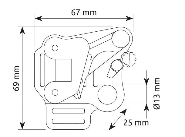 Ramme i aluminiumlegering. Presisjonsstøpt kam i rustfritt stål. Kan brukes som låsetrinse (for heising av materiell, maks 50kg).