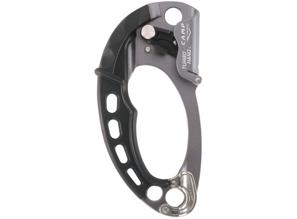 Turbohand er kanskje den mest effektive, slitesterke og ergonomiske håndlemma på markedet. Den er perfekt for deg som jobber mye i tau, er trepleier, driver med tauredning eller andre riggeaktiviteter. På rammen på nedsiden av låskammen er det montert en liten trinse som styrer tauet og reduserer friksjonen. Resultatet er lenger levetid på produktet og vesentlig mindre friksjon mens du klatrer. På skrå/vinklede tau førger denne trinsa for å beskytte tauet mot en potensiell slitt skarp kant på rammen.