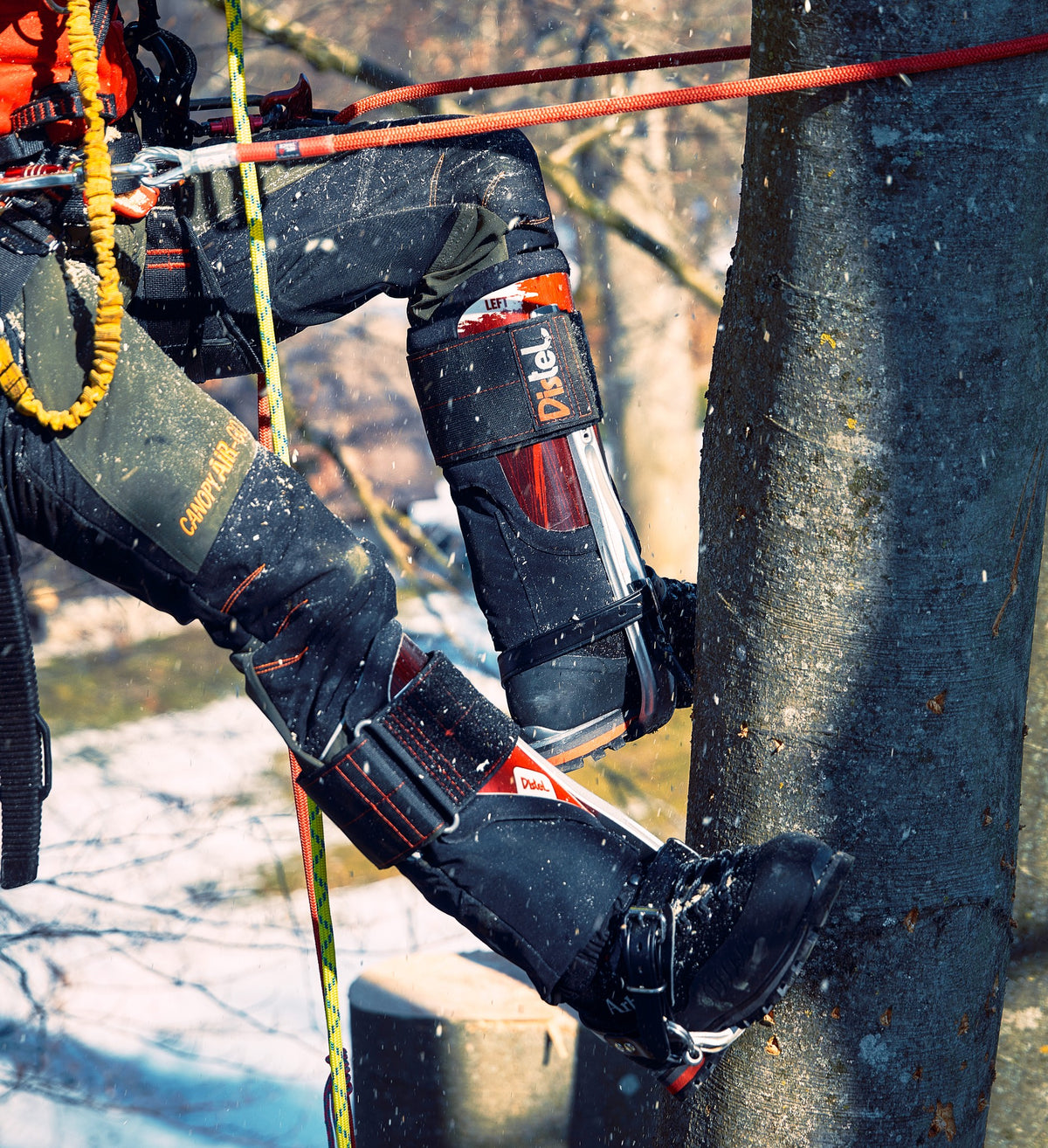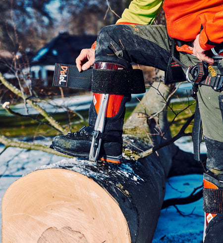 De nedre Classic-stroppene er laget av ekstremt slitesterkt, vanntett og robust beltebånd. Produsert i USA av BioThane®-materiale, svært motstandsdyktig mot harpiks og sagflis, og tåler daglig bruk i trepleie.