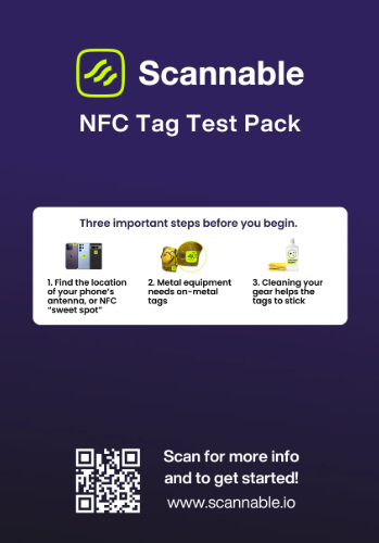 Få en komplett testpakke med 7 ulike NFC-tagger fra Scannable – perfekt for deg som ønsker å komme i gang med tagging, hverdagssporing eller merkeutstyr for høyde-, inspeksjons- og sikkerhetsarbeid.