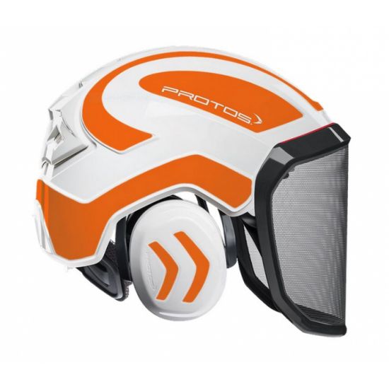 Skogbrukssektoren og dens ekstreme krav var og er fortsatt utgangspunktet for utviklingen av PROTOS®. Fra visiret til hørselvernet er alle komponenter integrert designet og hindrer at de hekter seg fast i grener, busker eller torner. Selv når visiret eller hørselvernet er i parkeringsposisjon, sitter PROTOS® komfortabelt på hodet. Tilbehør av høy kvalitet gjør PROTOS® til førstevalget innen skogbruk og sporing, uavhengig av om det er kaldt og vått eller varmt og tørt – uten forbehold.