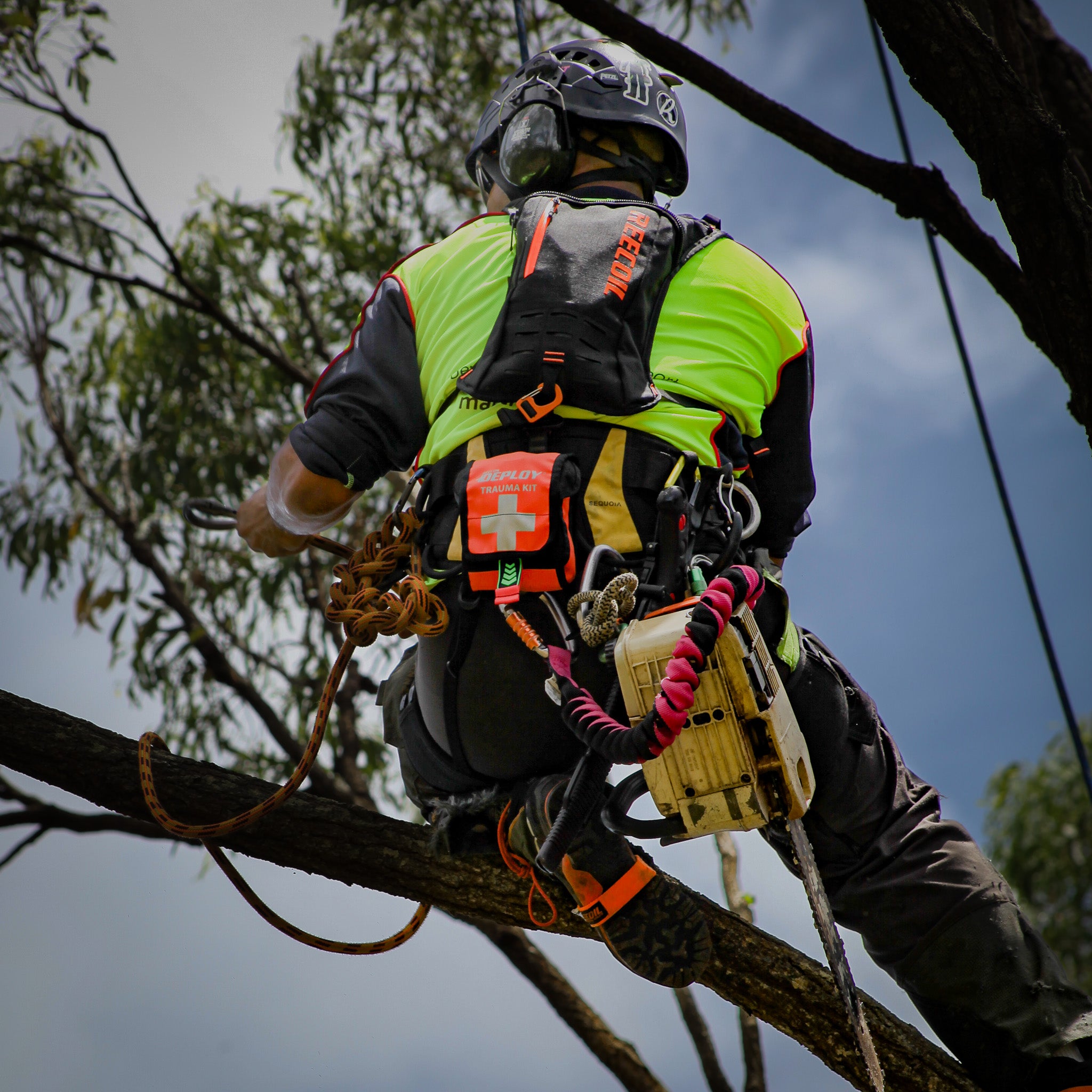 DEPLOY® Trauma Kit er et kompakt førstehjelpssett utviklet spesielt for arbeid i høyrisikomiljøer, som arbeid i høyden eller på avsidesliggende steder. Når sekunder teller, gir dette settet deg umiddelbar tilgang til livsviktig førstehjelpsutstyr for å håndtere alvorlige blødninger – typisk ved skader fra motorsag eller annet kraftverktøy.