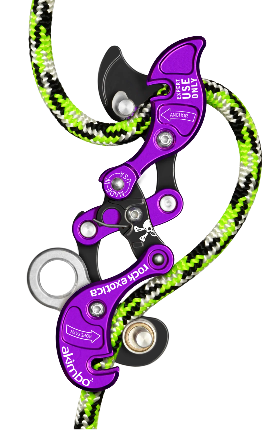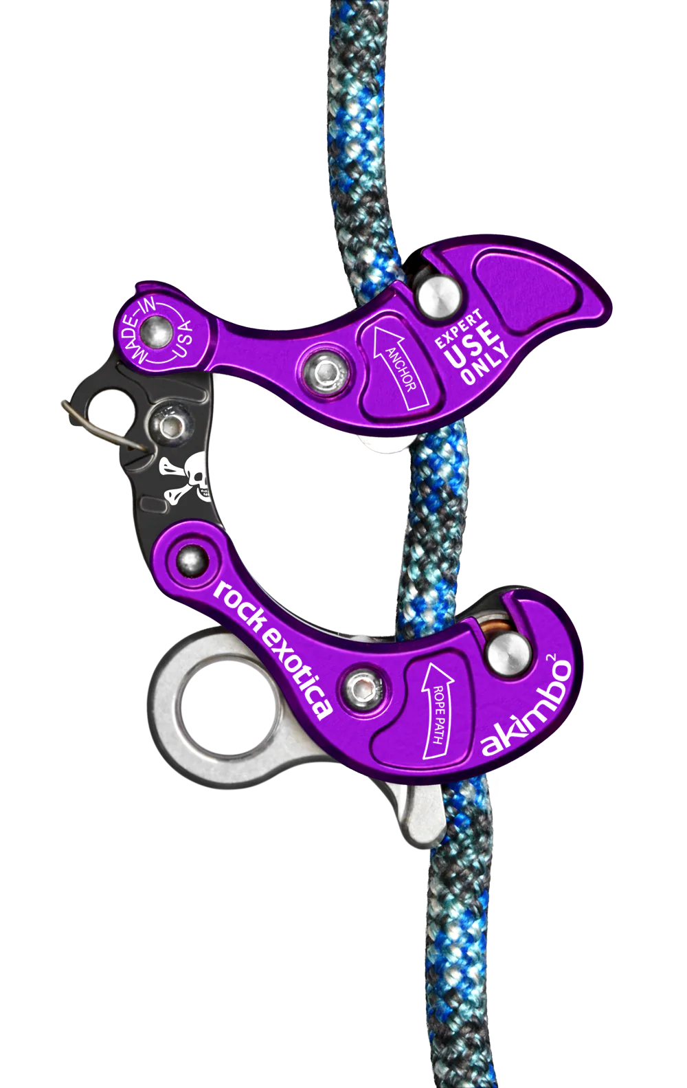 Akimbo² benytter justerbare kontaktflater (øvre og nedre "bollards") som gir deg mulighet til å finjustere friksjonen etter behov. Dette gjør det enkelt å tilpasse enheten til ulike tau, belastning og arbeidsforhold.