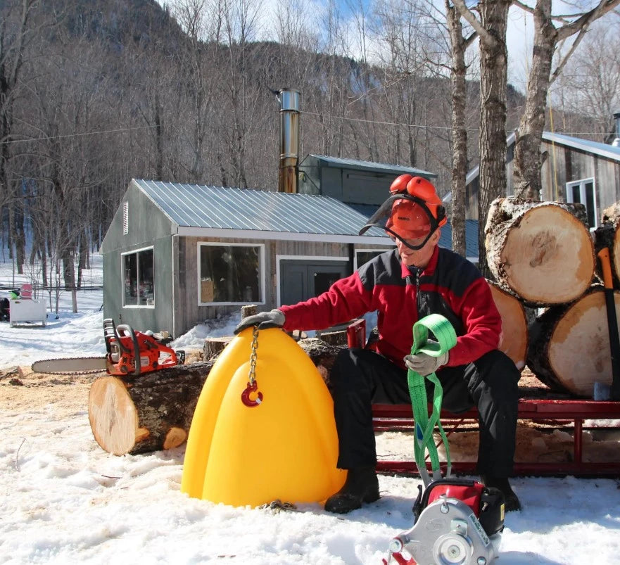 Hovedsakelig på grunn av den skliende kjeglen som er så praktisk, og hindrer stokker fra å sette seg fast i røtter og stubber. Formen gjør at den kan glir lett i terrenget og ungår skader på gjenværende trær. Den essensielle løsningen for å få ut litt ved og håndtere alle situasjonene som oppstår i skogen!